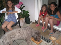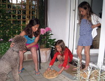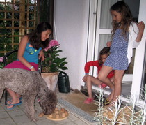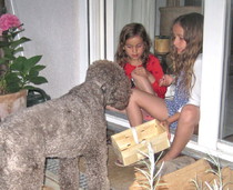 Wenn uns Freunde oder Verwandte mit Kindern besuchen, ist Paula in ihrem Element. Zuerst müssen wir sie immer ein wenig zurückhalten, denn am liebsten möchte sie die Kinder abschlecken, so freut sie sich.